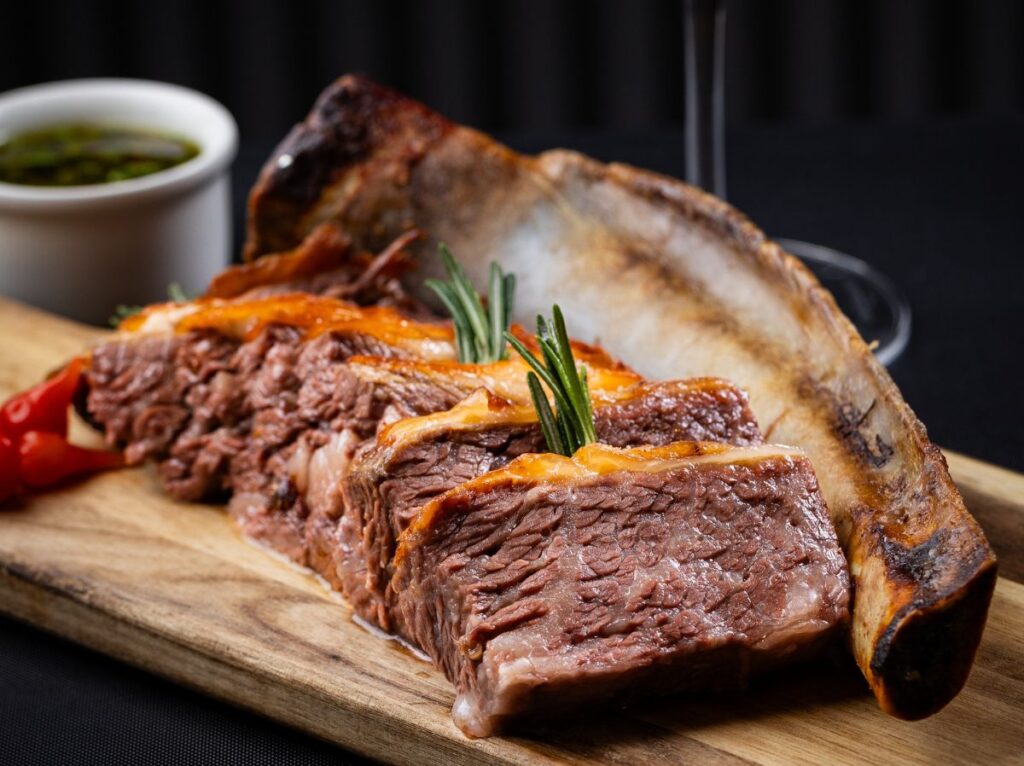 Beef ribs seasoned and grilled until tender, offering rich, savory flavor.